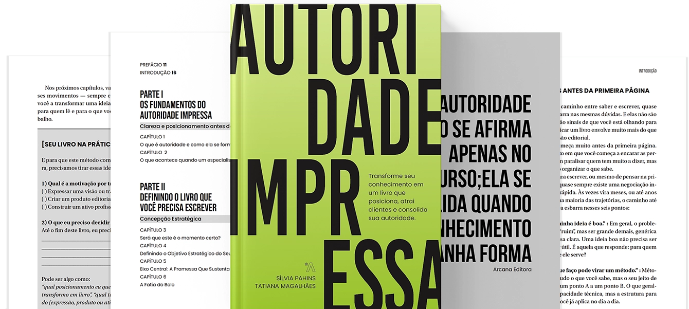 Juntas, integram visão estratégica e construção editorial, acompanhando especialistas desde a concepção da ideia até a consolidação do livro como ativo profissional.